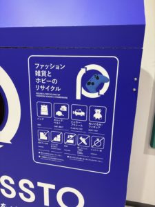 大きく2つの箱があり、「衣類」「ファッション雑貨とホビー」に分かれているそう。それぞれに入れていいもの・ダメなものが書いてあり、筆者が見た時にも中には服などが入っていました。