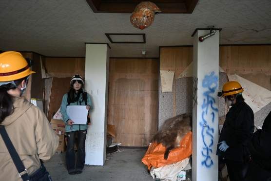 山肌に寄り添うように建つ杉屋旅館は、遠目にも廃墟の気配を漂わせていました。参加者は4人、ガイドは2人。入口に立った瞬間、冷たい空気が肌を刺し、言葉にならない緊張が走ります。ツアー参加者は20代から30代が多く、東京や愛媛など遠方から来る人も多いそうです。ハロウィーンの10月31日から始まり11月の三連休までで40人ほどが訪れたそうです。