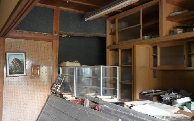 今回は立ち入り不可でしたが、外から場所を教えてもらいました。室内は暗く、仏壇の姿ははっきりとは見えません。夜になると、金色の部分が光に浮かび上がるそうです。