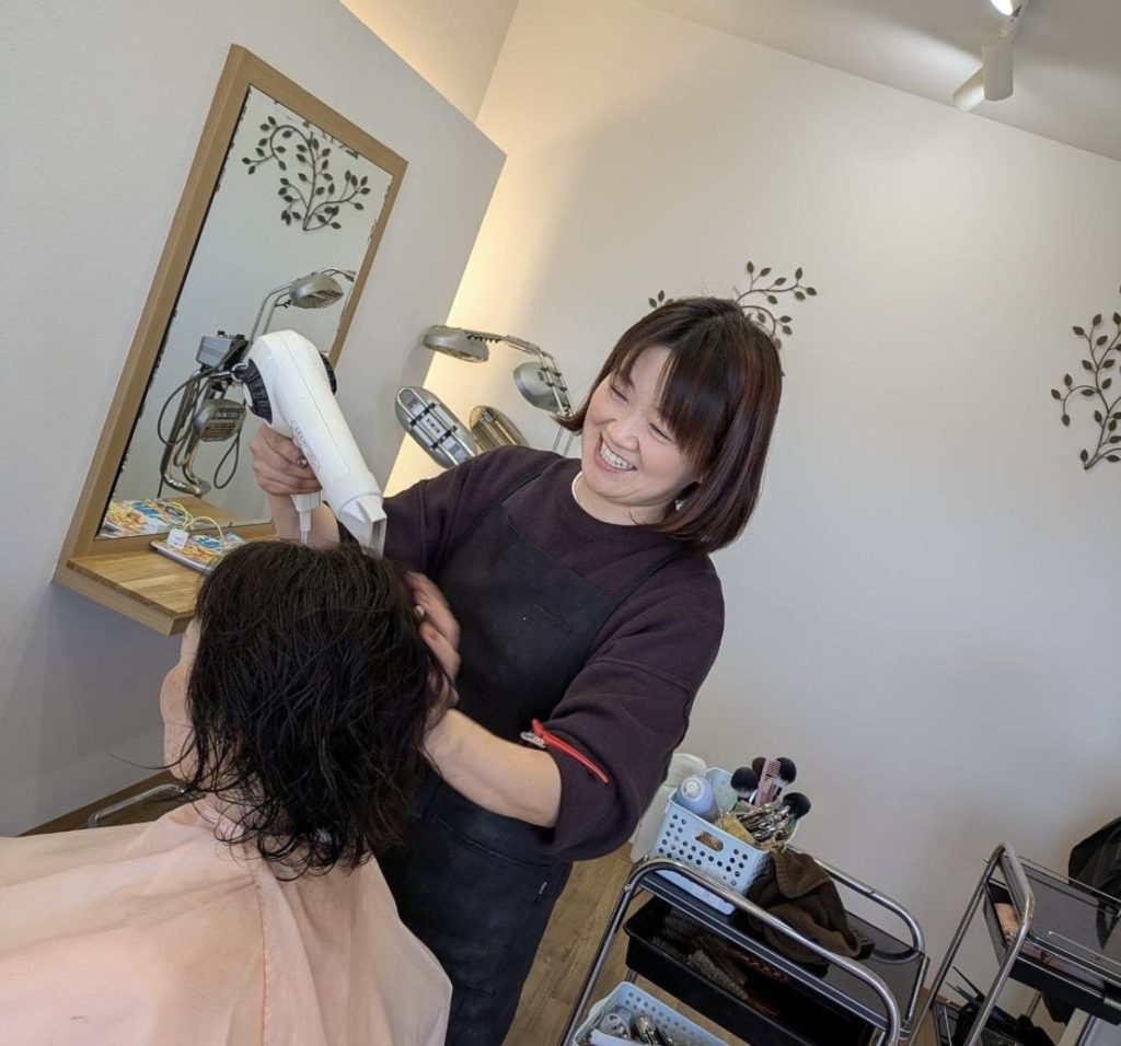 自信をもってお勧めするハリ・コシカラーは、24種のハーブ、小麦粉、コーンスターチで染める自然派志向のカラー剤です。白髪染めだけでなく再現性の高いカットもお任せ下さい。「ここはふわっとさせたい」などのご要望にもおこたえします。年齢とともに変化する髪の悩みに寄り添い、 いつまでも若々しく、自信の持てるヘアスタイルをご提案いたします。おかあさん世代、おばあちゃん世代でも通いやすい美容室です。